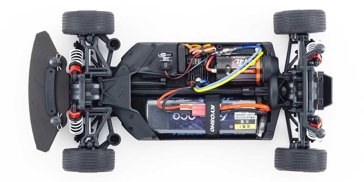 For the pure enjoyment of R/C car driving, the combination of a beautifully reproduced car body with the FAZER series chassis can't be beaten. Kyosho has taken its standard touring car chassis and given it a full model makeover that has evolved performance to a new level. A simplified design with fewer parts has improved maintenance efficiency and reduced weight while core strength and rigidity has been increased through the materials and ribbing and stiffeners on front and rear. In addition, the symmetrical chassis design synergizes excellent front-rear balance through the suspension with responsive control, irrespective of power source. Featuring slipper clutch, front & rear gear differentials, oil shocks and full ball bearing specs, the high durability and impact resistance allows drivers to unleash the full potential of the chassis. Brake disc wheel hubs with two different offsets (0mm, +5mm) provide compatibility with 190mm and 200mm width body styles and allows the wheelbase to be adjusted to 260mm by replacing some parts (sold separately) for compatibility with other 1/10 scale body styles, in addition the body included. The Readyset package comes fully assembled and includes everything except charger and battery for the chassis, and batteries for the transmitter.